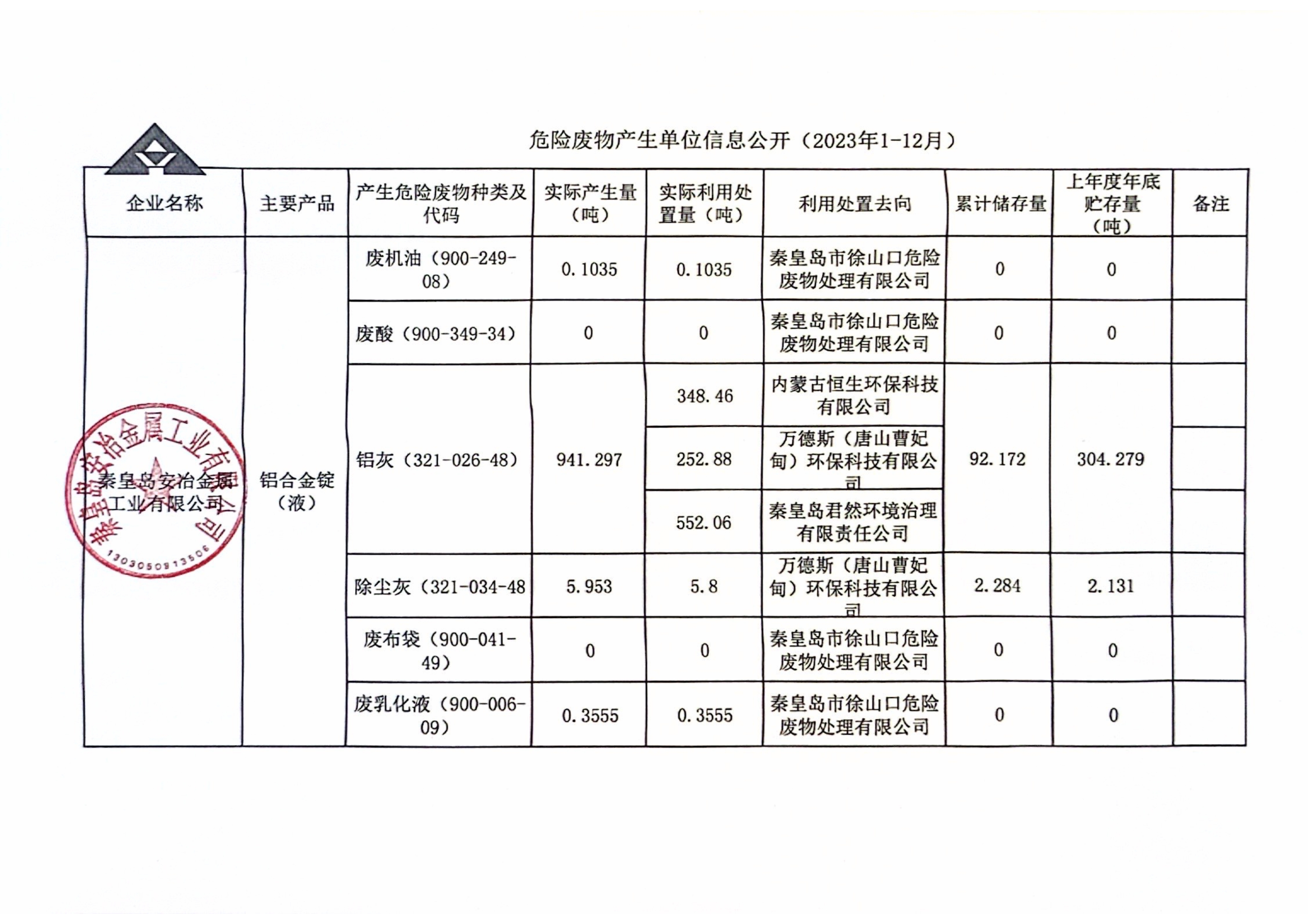 當前位置:首頁-資訊中心-危險廢物產(chǎn)生單位信息公開(2023年1-12月)